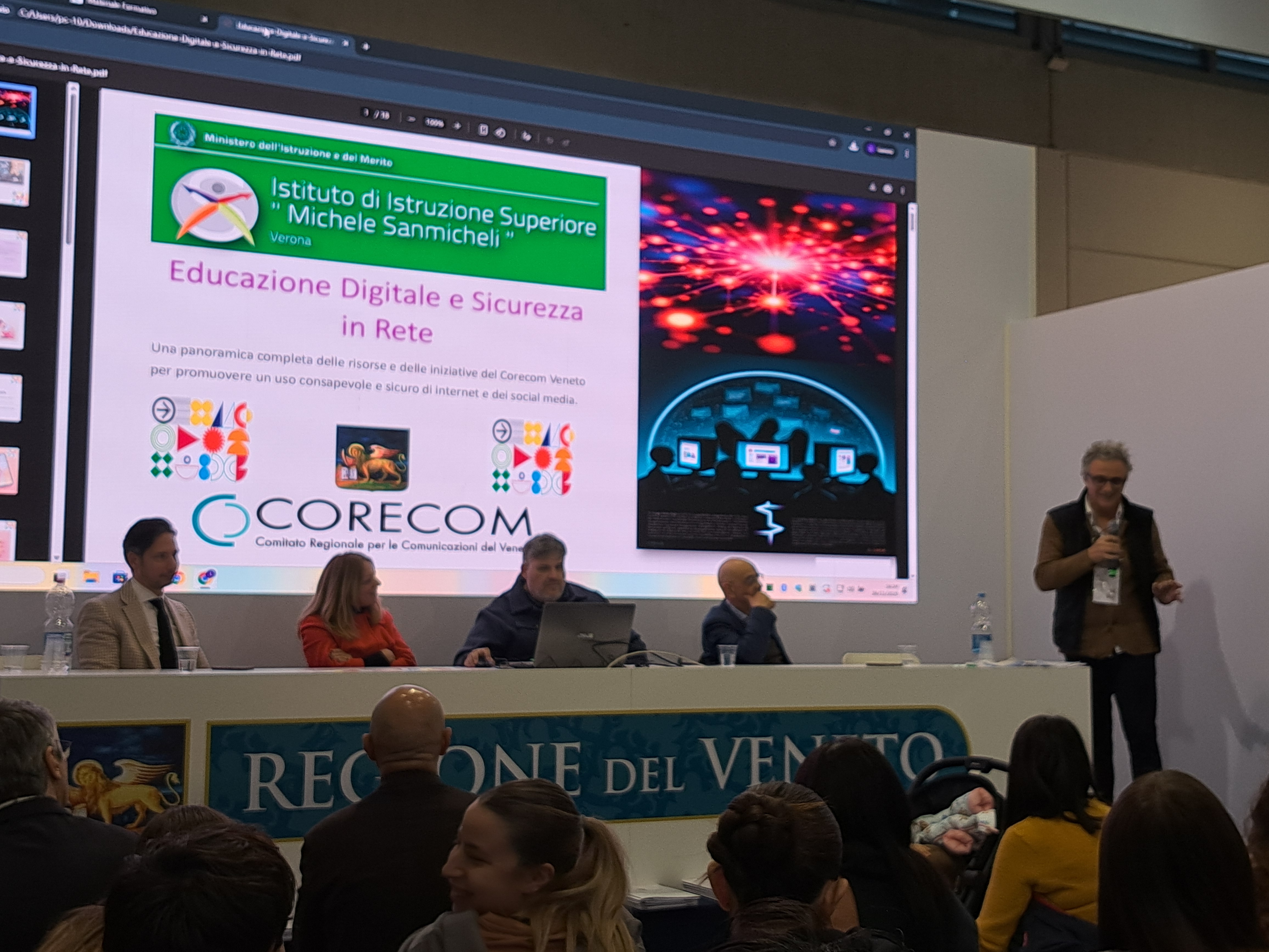 Hanno assistito alla presentazione delegazioni di importanti istituti scolastici del territorio, quali l’I.T.C. Calvi e l’I.T. Marconi di Padova, nonché l’I.T.C. Pindemonte e l’I.I.S. Sanmicheli di Verona. Quest’ultimo, rappresentato dal prof. Angelo Rizzo e da 4 allievi, ha inoltre dimostrato al pubblico l’utilizzo della Piattaforma Media education effettuato nel corso delle attività didattiche di educazione civica e digitale, consentendo anche una verifica sulla soddisfazione degli utenti per cui l’iniziativa è stata pensata.