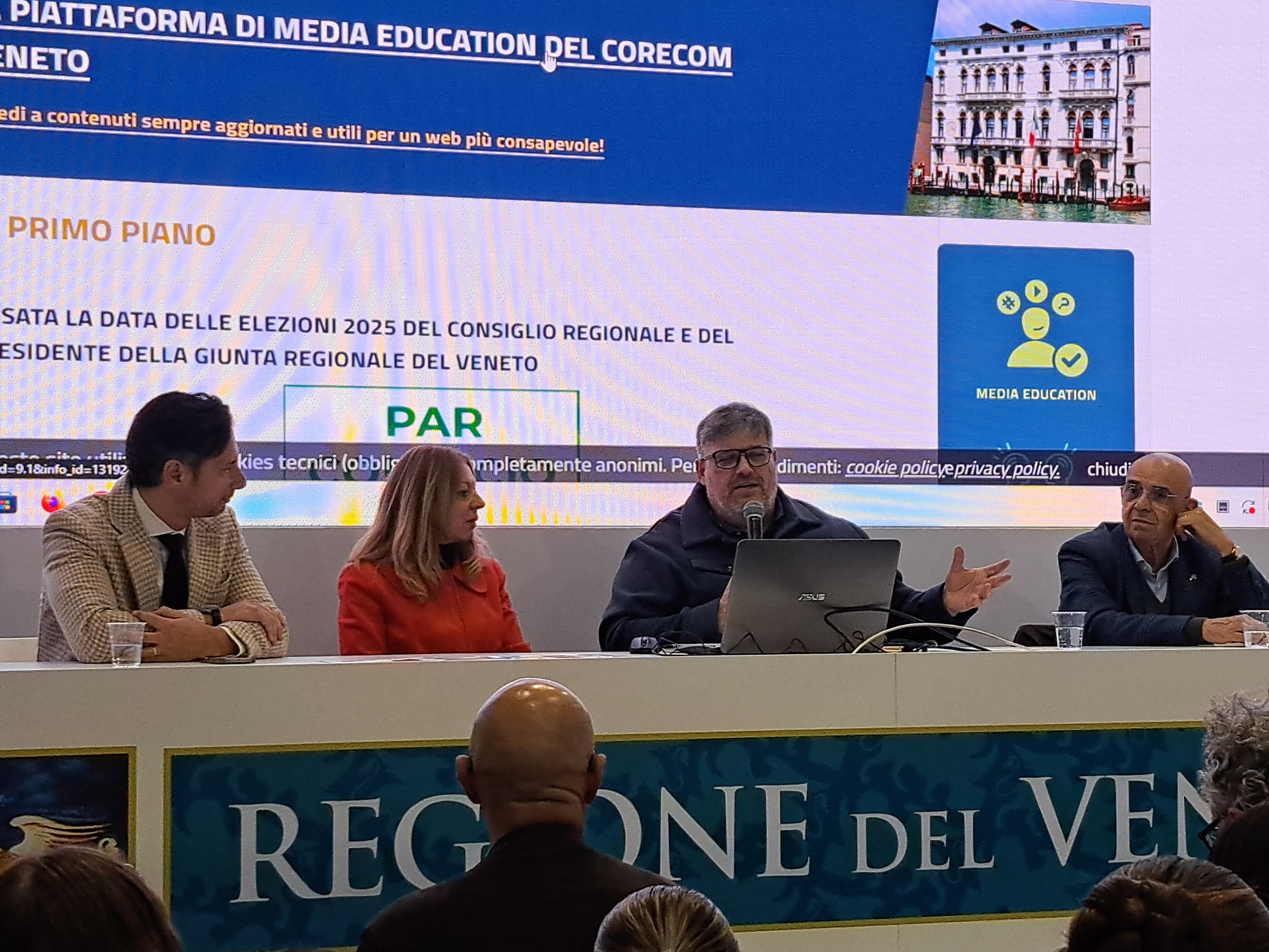 Lo spazio destinato al Corecom è stato dedicato alla presentazione delle principali iniziative intraprese dal Comitato nella direzione dell’alfabetizzazione digitale e mediatica, in particolare a beneficio di adolescenti e preadolescenti.