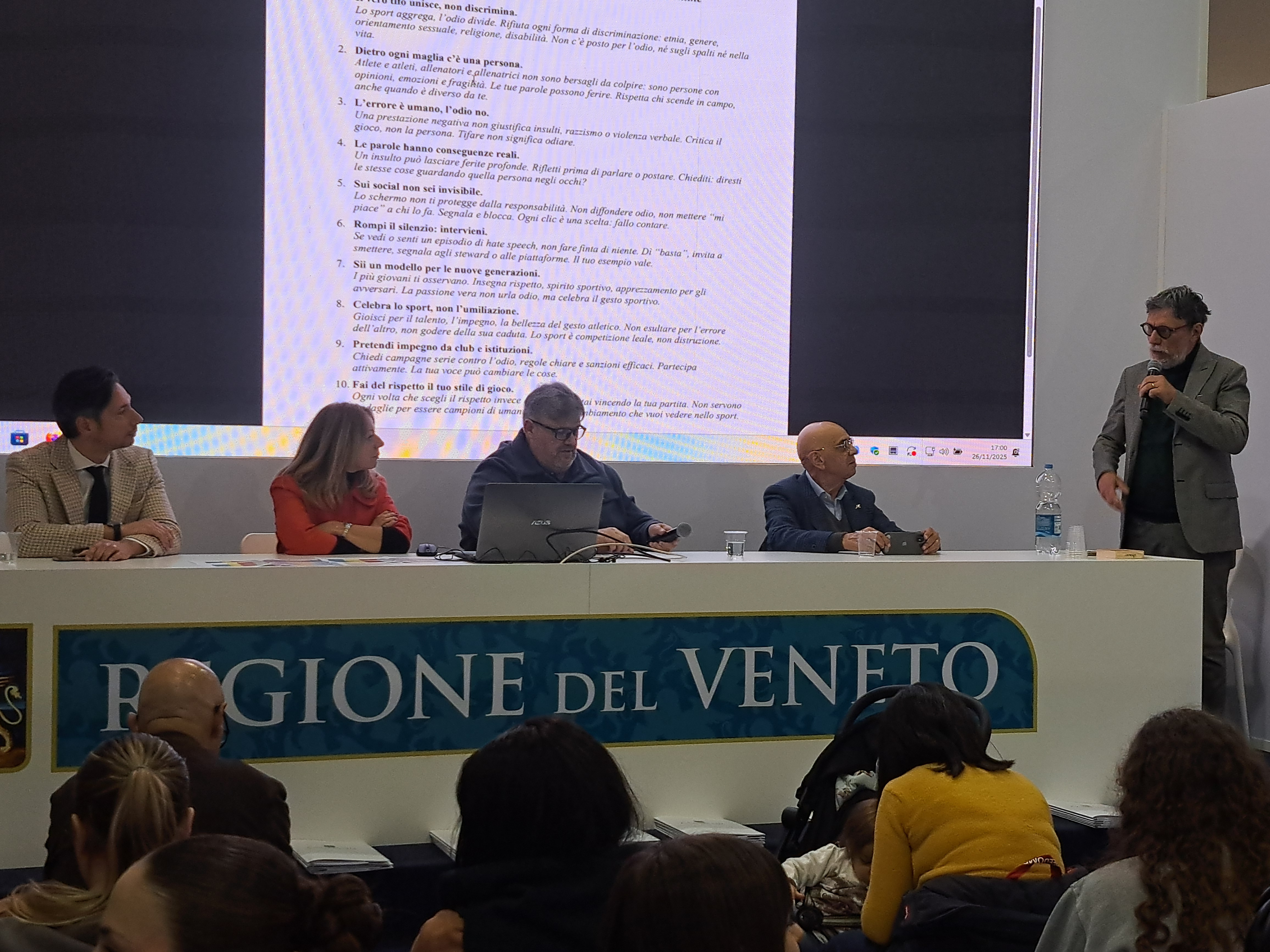 È stata in particolare l’occasione per rilanciare la piattaforma Media education, già presentata a Job&Orienta 2024, e il Decalogo contro il linguaggio d'odio nello sport - Gioca la tua partita per il rispetto in campo, sugli spalti e online, frutto della collaborazione tra Corecom e Università degli Studi di Padova – Dipartimento di Psicologia dello Sviluppo e della Socializzazione, d’intesa con l’ESU di Padova e la Provincia di Padova.